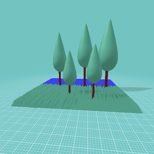 With grass trees and a lake