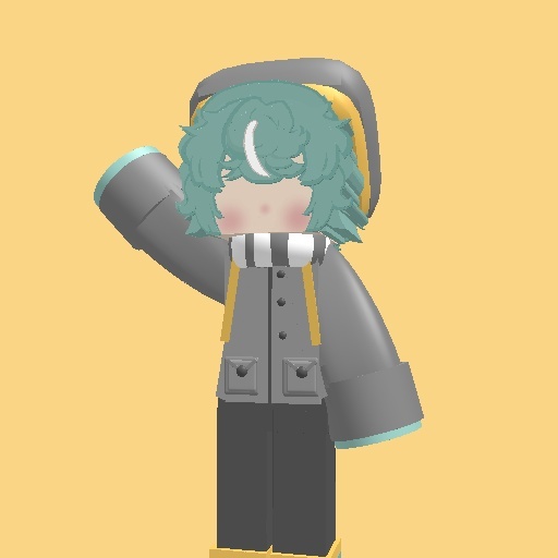 I was to lazy to figure out what i would cover the arm with so i just made him wave lol (This is a pokemon themed/vibed clothing)