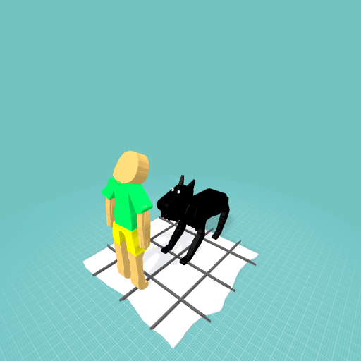 Boy looking at his big Dog
