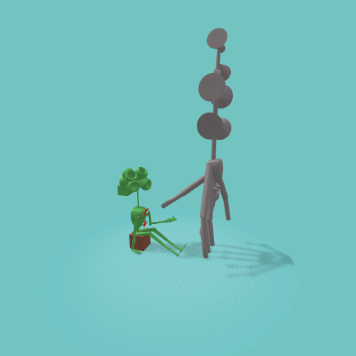 Metal siren head gives money to grass siren head