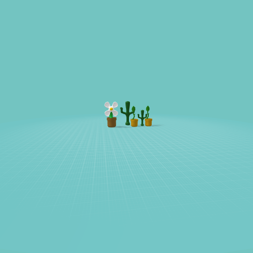 great garden with a cactus, two leaf plants and a daisy