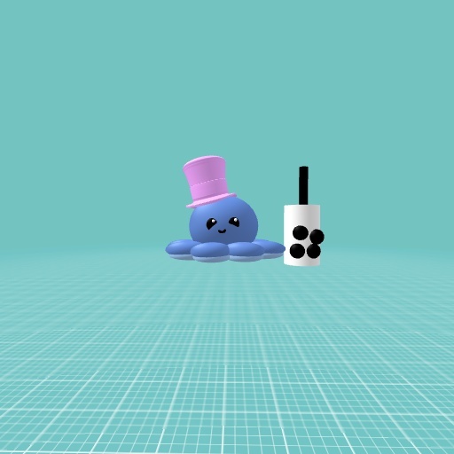 Octopus is Sad. Octopus has a hat. Octopus has Boba Tea. Octopus is Happy