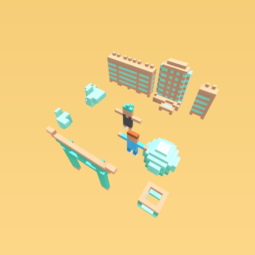 There are some buildings and some other kinds of things and there are two people.