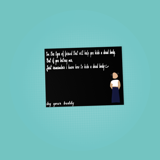 Im the type of friend that will help you hide a dead body but if you betray me just know i know how to hide a dead body.