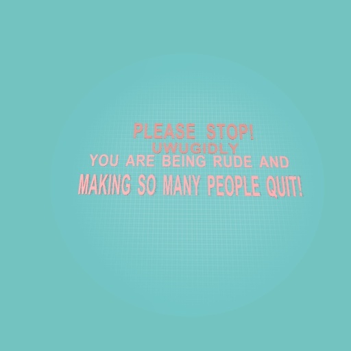 This person called: Uwugidly has been REALLY rude and mean to lots of people and making them quit! You may have already herd. Please help stop her/him. Please report or keep the mesage going! All of the peace has stop because of her/him!