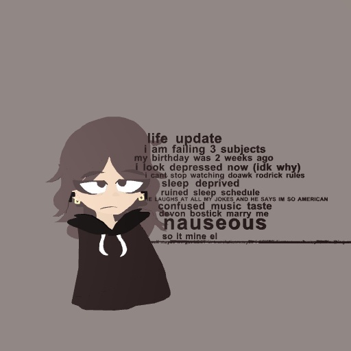 Oh i hope everything gets better!! :(( lol gotta admit half that stuff describes me TvT i feel like your life will get better dw!!^^