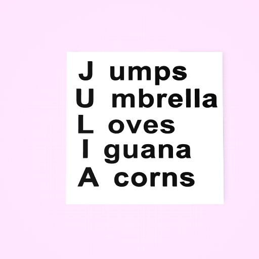 julia JUMPS with her UMBRELLA in the rain and she LOVES to watch the rain with her pet IGUANA while they eat ACORNS together as a family
