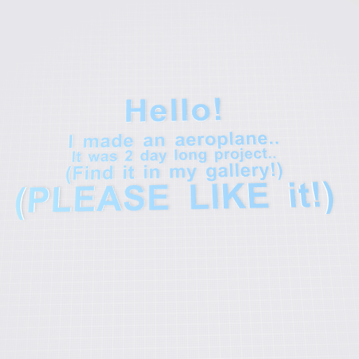 Self Explanatory.. But yeah, made an aeroplane.. on a side note, I'm pretty sure you can't view it but uh.. atleast you can see it as a picture... (I might just leave at this point.. this is the THIRD TIME a big project of mines just gets WIPED OFF because there's no back up data saving in this! I really wanna quit...)