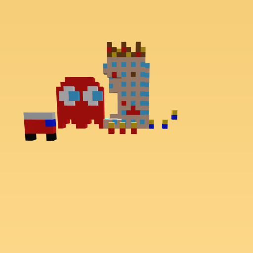 A pac-man ghost is coming there is fire nd every thing bad!