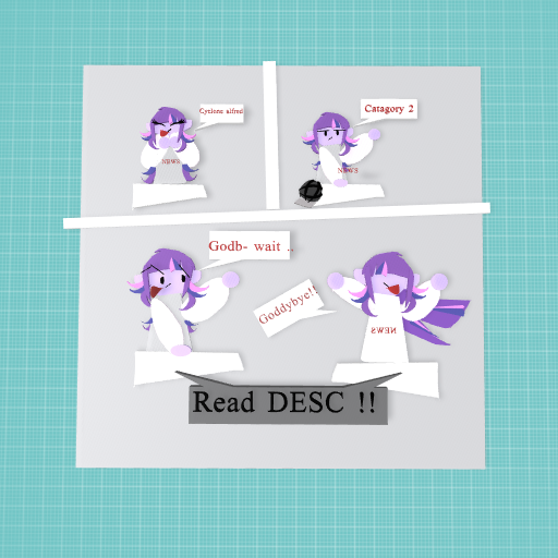 ThatOneFurryUm - well cyclone are sorta like tornado’s except without the the spiral- they’re just reallllly big wind storms. Catogorys are liek - catogory 1. Not that bad - catogory 2- sorry bad. And they go