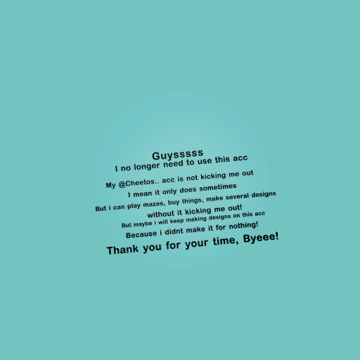 I have made some designs on my old acc, and just because my old acc works, it doesnt mean i wont EVER log in this acc. Btw i just made a new design in my @Cheetos.. acc, you should check it out! My cat (tofu) is now sleeping beside me, and the design i made has something to do with tofu…. Hugz, Cheetos..
