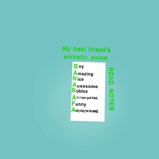 Sorry for the strange poem bits for a few letters, I couldn't find any adjectives for him that started with the letter. Just to say, my friend loves roblox!!!