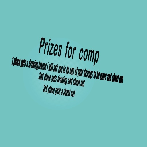 First place gets tokens like i will ask you to make a desingn with 50 tokens then im buying it 5 times ,and a drawing,shout out