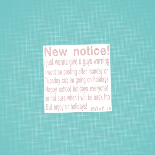 I wont be posting from monday or tuesday. Im gone for thr school holidays! Not sure when i’ll be back tho but i’ll make a new post when i am