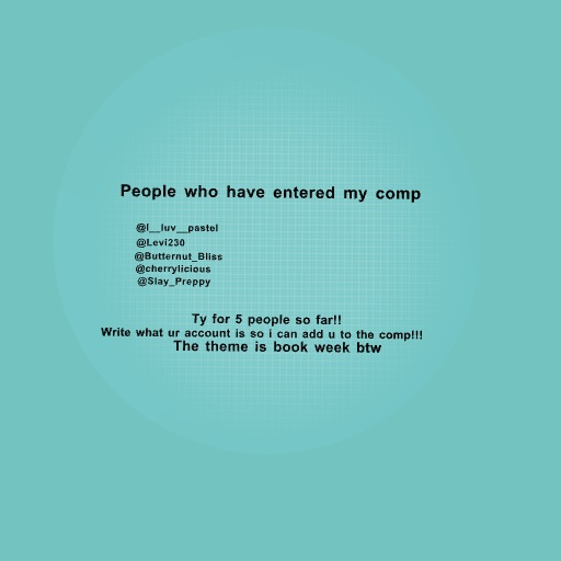 THE THEME IS BOOK WEEK!!!!! Entrys close 20th of August!!!!! 1st wins 60 coins, 2nd wins 30 coins and 3rd gets 10 coins! Good Luck!!!!