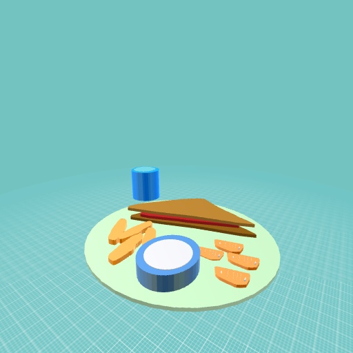 Lunch! Pb&j, carrots (with ranch) and an orange. With water
