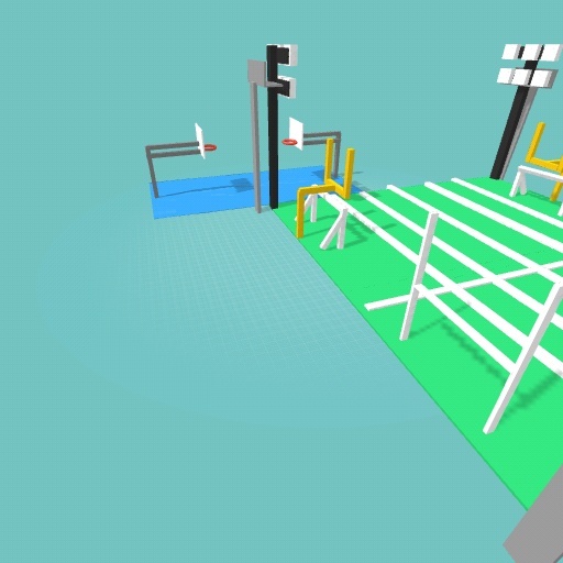basketball court and football field and rugby pitch with soccer goals
