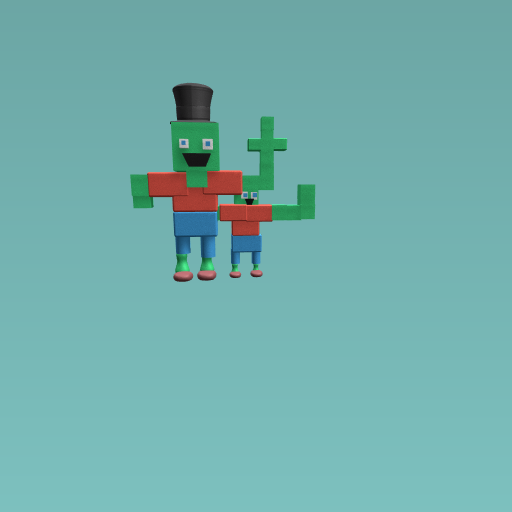 there are two giants one with a hat and the other is the baby giant.