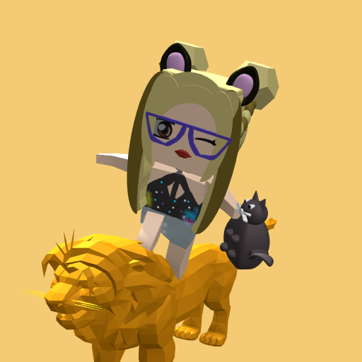 lady with ears, a cat and a gold lion