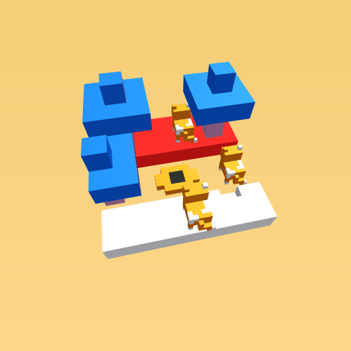 Unicor 3 trees, Cats 3, 1 Flower, Red sky, White grass