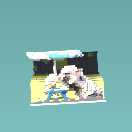 From far away,it looks like a pig eating ice cream