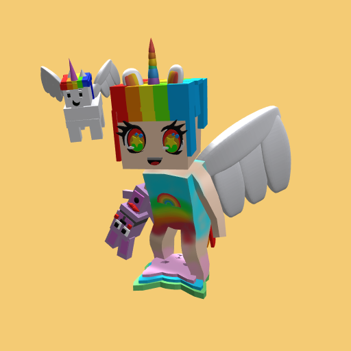 Its a rainbow girl with here pet unicorn