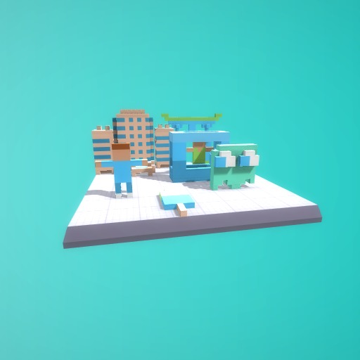 It has tree buildings