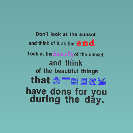When you think that you are alone think of the small things people have done for you during the day. >.
