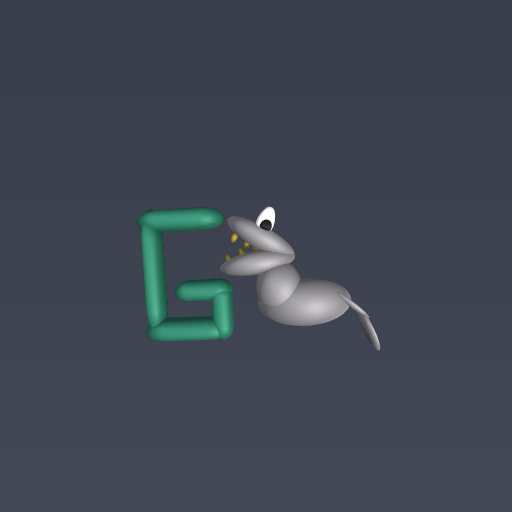 A gray dinausour by a green G