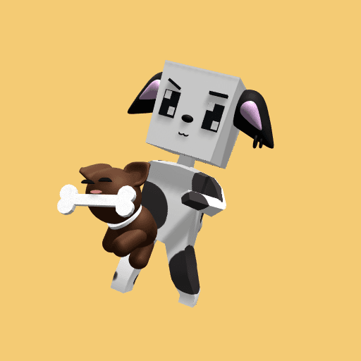 White spotted puppy walking a puppy