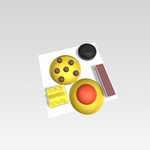 We have got a choclate wafer, Oreo, choc chip cookie, custrad cream, and jam drop!