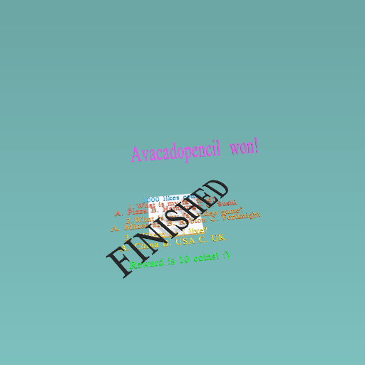 sultana28 1:Sushi 2: Roblox 3:China i feel this is the awnser
