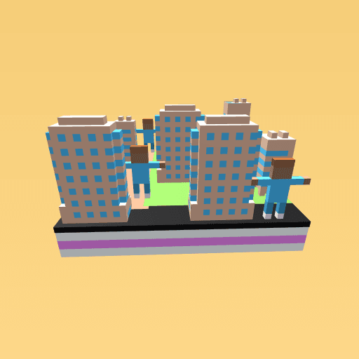 The big buildings and people walking around.