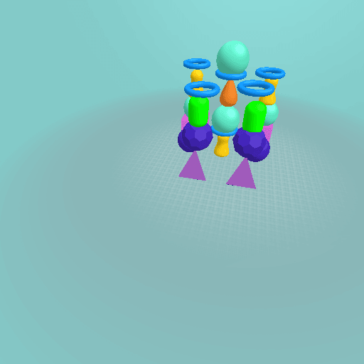 A really colourful tower that has all kinds of shapes.
