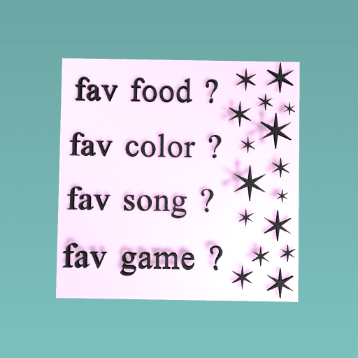 STU#572460Truck1 pizza sewwets mouten diue and ice creem 2 blak and red and yellow 3 in engish dont let me down sen yoreta and hovan and shap of you 4 fortnite pupge call of duty
