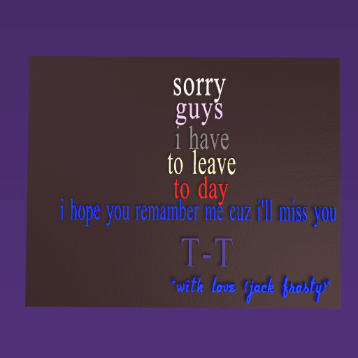 U TOO!!??? i guess everyone is leaving today ;-; miss u too