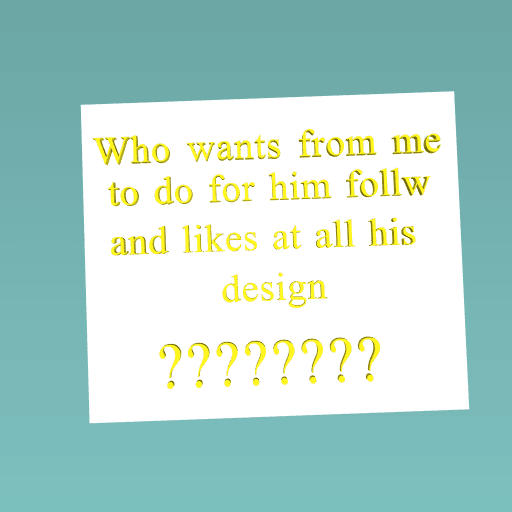 Who wants from me to do for him fllow and likes at his design , who wants tell me .