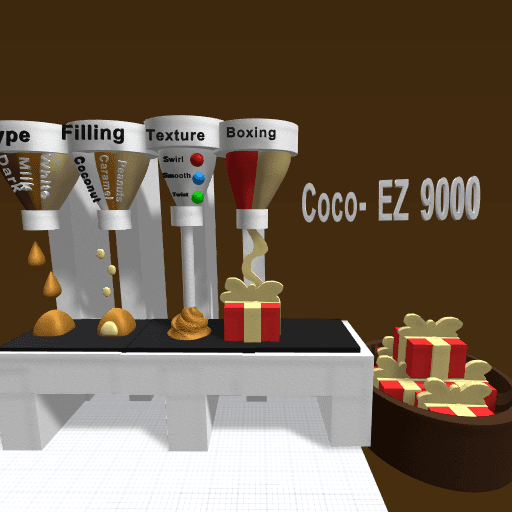 The coolest chocolate maker on the planet! :O has 4 pumps for type, filling, texture, and boxing! Yum!