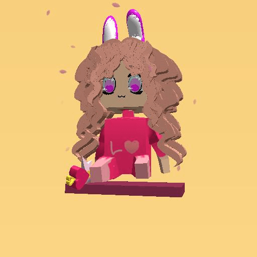 The pink girl bunny with flying flowers