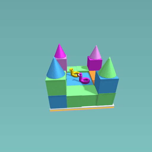 Un coete con alberca y flotadores