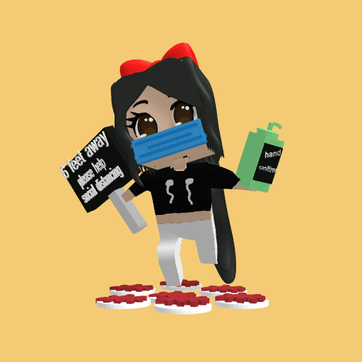 corona safe girl use lots of hand sanitizer and stay 6 feet away from people and wear mask .