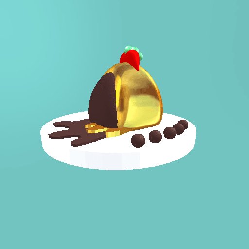 Deluxe golden melted leaf drizzled over a warm, spongy milk chocolate cake topped off with 2 strawberries!