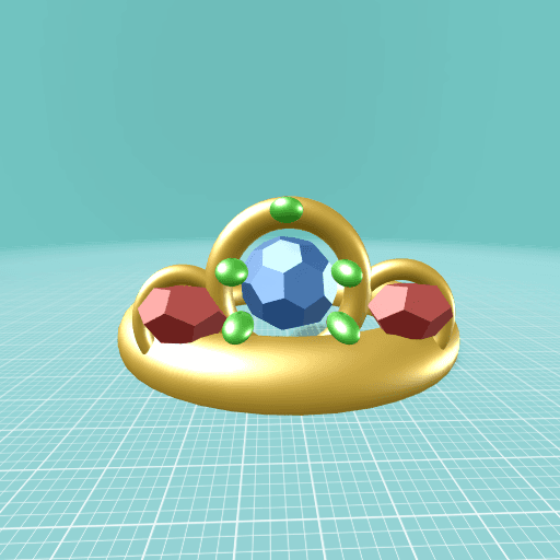 The gems, are saphires and rubies. The gems that are tiny, are emerelds, and the crown is gold.
