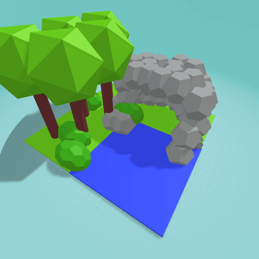 Cave, trees, pond...