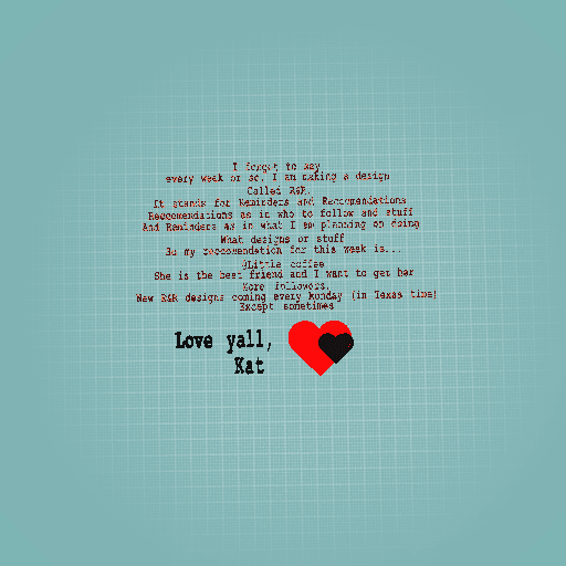 R&R designs come out every Monday in Texas time Reminders will be posted in them Reccomendations: hope yall get in it!