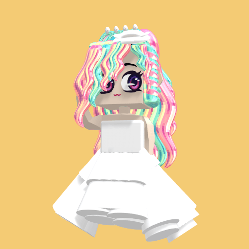 White dress with multicoloured hair