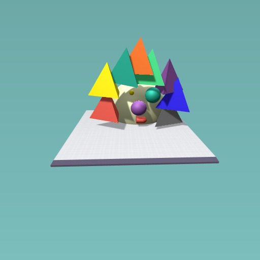 A man with rainbow triangles for hair and 1 big eye and 1 small eye and a big fat massive nose