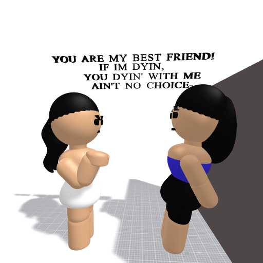 Me: YOU ARE MY BEST FRIEND! IF IM DIEIN', YOU DIEIN' WITH ME. AIN'T NO CHOICE.