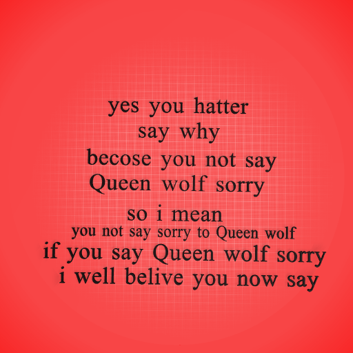 you make bad thing with him and Queen wolf will not be comint she will brack him plz tell everyone to say sorry Queen wolf now