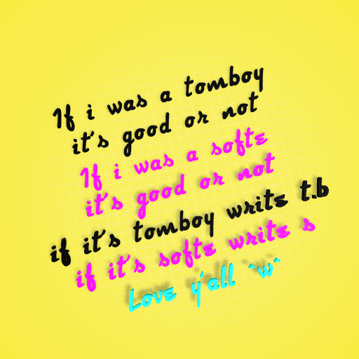 I'm helf "Tomboy" and helf "Softe" if you don't know , tell me what are you tomboy , softe , normal , crybaby , bullyer what are you ?